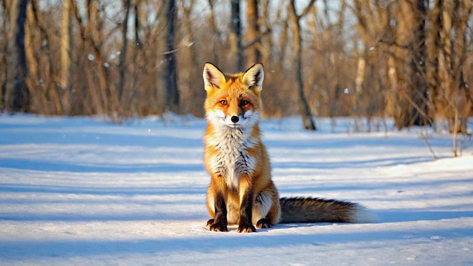 "A young red fox sitting in a snowy forest clearing at dawn, wildlife photography style, photorealistic, soft diffused morning light, natural colors, shallow depth of field, 4k resolution."